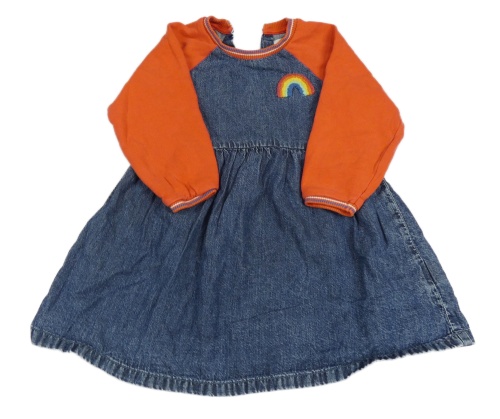 Tmavomodro-oranžové riflovo/teplákové šaty s duhou Next