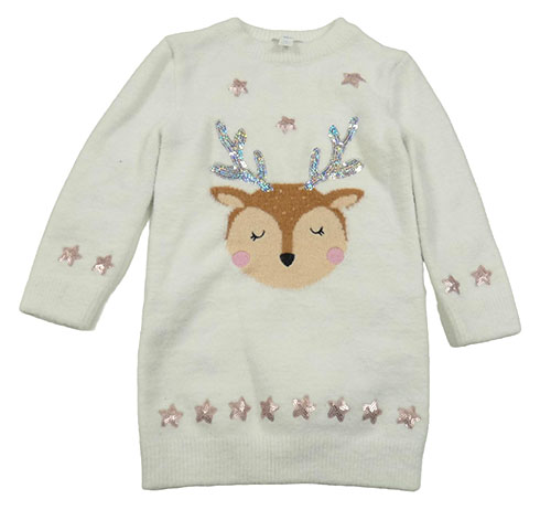 Bílé chlupaté svetrové šaty se sobem s flitry M&Co.