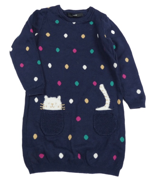 Tmavomodro-barevné puntíkaté pletené šaty s kočičkou George