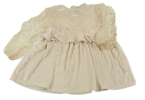 Světlebéžové sametové šaty s organzovými rukávy a kytičkami Lcw