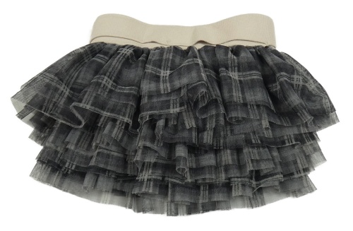 Šedo-béžová kostkovaná tylová sukně s béžovým pasem Reserved