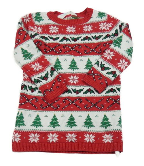 Červeno-bílo-zelené svetrové šaty se stromy a norským vzorem Primark