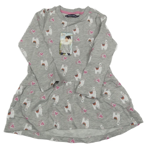 Nové - Šedé melírované teplákové šaty s lamami a srdíčky Pocopiano