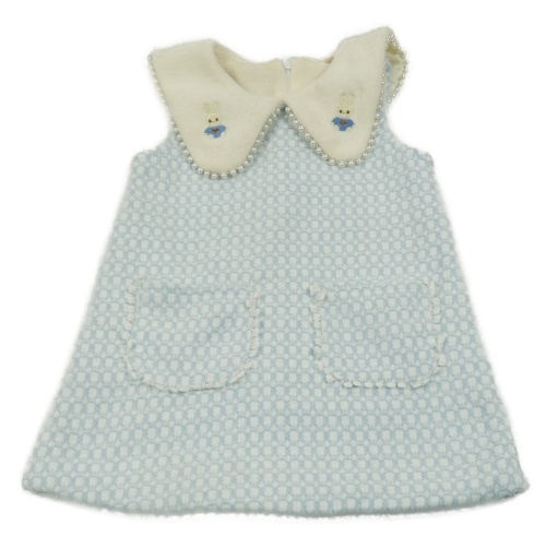 Světlemodro-bílé vzorované vlněné zateplené šaty s límečkem se zajíčky a korálky