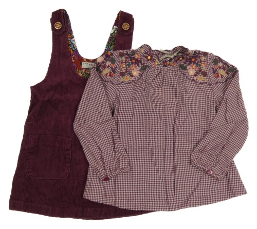• 2set - Vínové manšestrové laclové šaty + vínovo-šedá kostkovaná halenka s výšivkami květů Next