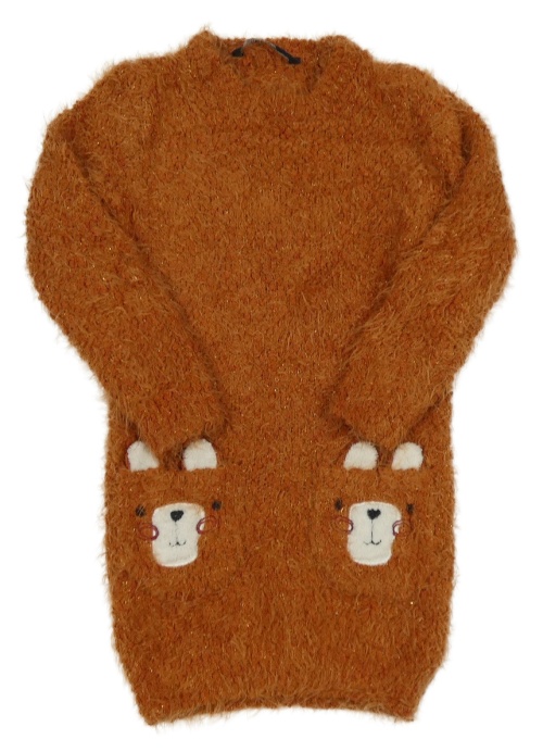 Hnědé třpytivé chlupaté svetrové šaty s kapsami s medvědy George