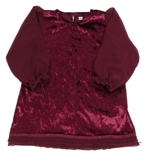 Vínové sametové šaty s žoržetovými rukávy