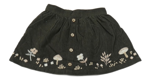 Čokoládová manšestrová sukně s kytičkami a knoflíky Tu