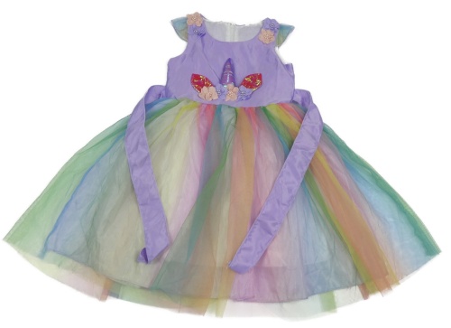 Lila-barevné tylové slavnostní šaty s jednorožcem a páskem
