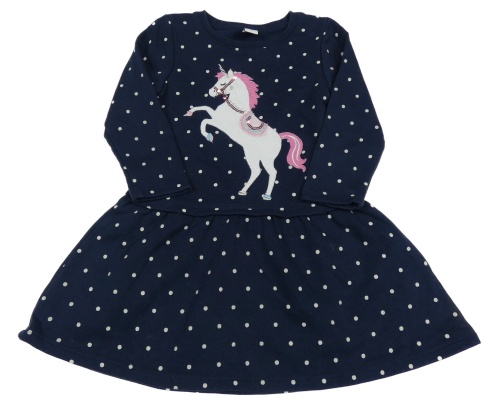 Tmavomodré puntíkaté teplákové šaty s jednorožcem s flitry Topolino