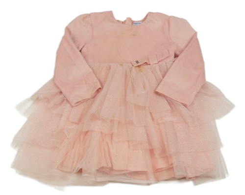 Světlerůžové plyšovo/tylové šaty s mašlí Mayoral