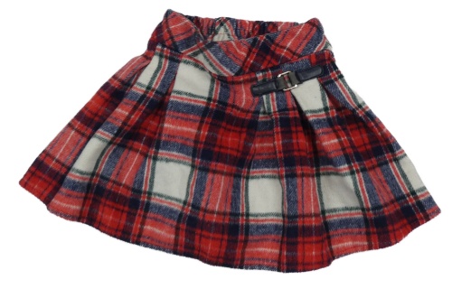 Červeno-tmavomodro-smetanová kostkovaná vlněná sukně s přezkou Nutmeg