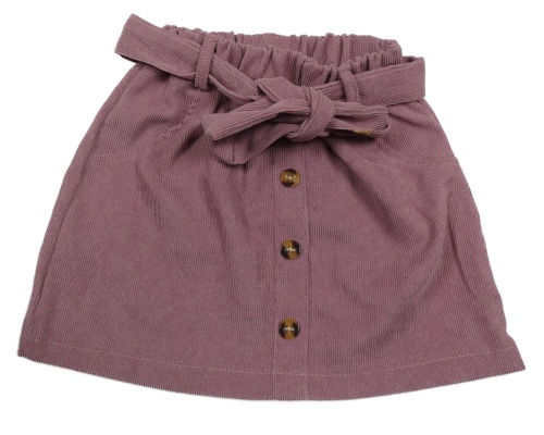 Starorůžová žebrovaná sukně s knoflíky a páskem