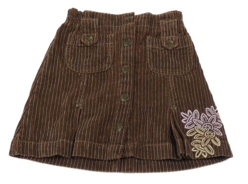 Hnědá manšestrová sukně s výšivkami květů