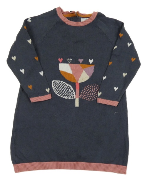Tmavošedé pletené šaty s růžovým lemem a květinou M&S