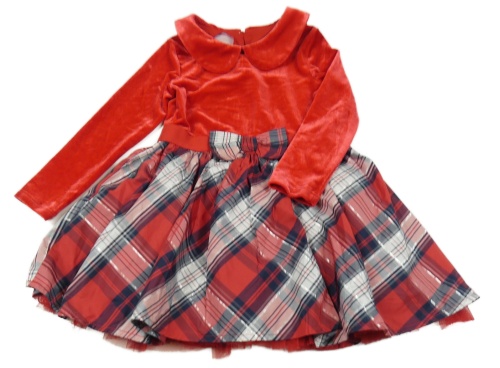 Červeno-kárované sametovo/šusťákové šaty Dunnes
