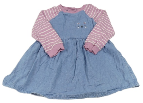 Modro-pruhované riflovo/teplákové šaty s kočkou Nutmeg