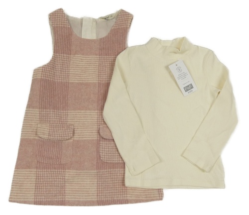 Nové - 2set - Smetanové žebrované triko + Růžovo-smetanové kostkované