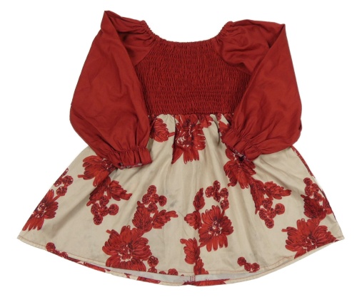 Červeno-béžové šaty s květinami
