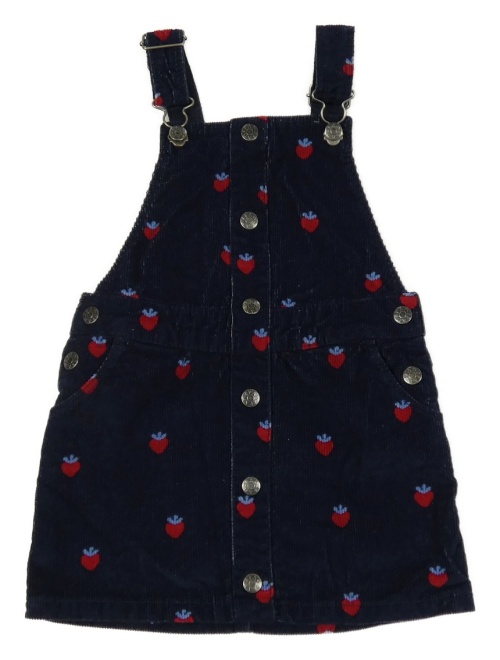 Tmavomodré manšestrové laclové šaty s jahodami