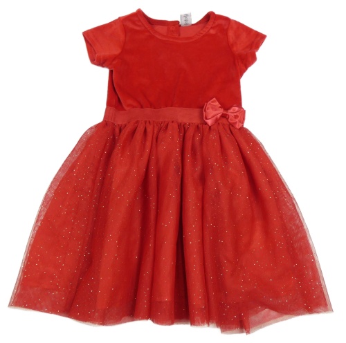 Červené plyšovo/tylové šaty s mašlí a zlatými puntíky dopodopo