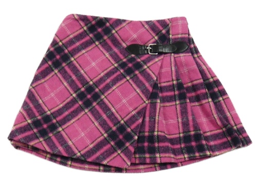 Tmavorůžovo-červeno-bílá kostkovaná vlněná sukně Dunnes