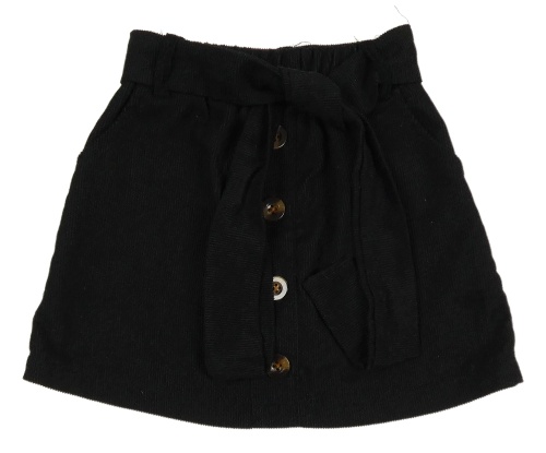 Černá manšestrová sukně s knoflíky a páskem SHEIN