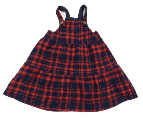 Tmavomodro-červené kostkované vlněné šaty Tu