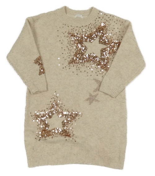 Béžové svetrové šaty s hvězdičkami z flitrů Next