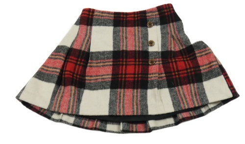 Světlešedo-černo-červená kostkovaná vlněná sukně Next