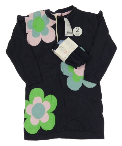 Nové - 2Set - Tmavomodré pletené šaty s květy a volánky + punčocháče Next