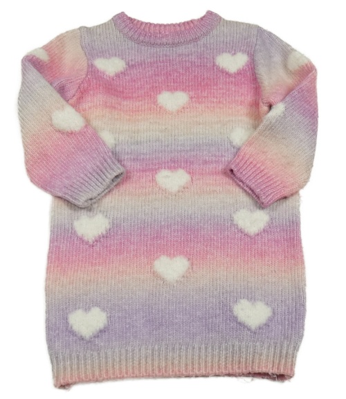 Lila-růžové ombré svetrové šaty se srdíčky Nutmeg