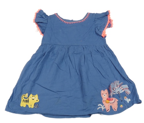 Modré plátěné šaty s tygrem a lamou a palmou a volánky M&S