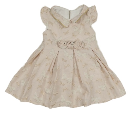 Pudrové šaty s motýly a límečkem