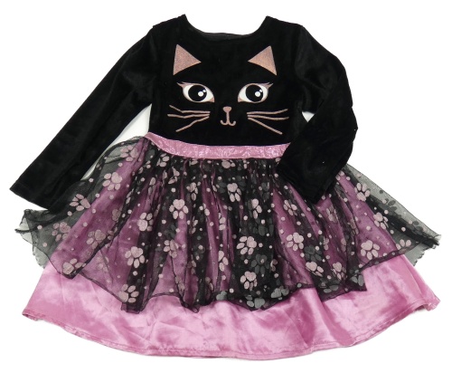 Černo-růžové sametovo/tylové šaty s kočkou