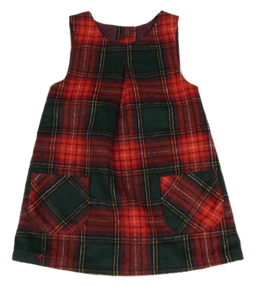 Červeno-tmavozeleno-černé kostkované vlněné šaty Nutmeg