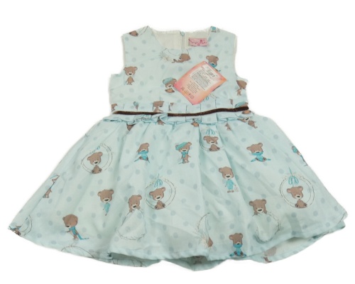Nové - Světlemodré puntíkaté plátěné šaty s medvědy