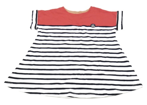 Růžovo-bílo-tmavomodré teplákové pruhované šaty
