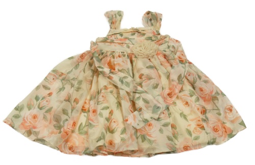 Smetnaovo-zeleno-růžové květované šifonové šaty s páskem