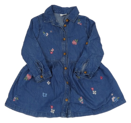 Modré lehké riflové propínací šaty s výšivkami květů F&F
