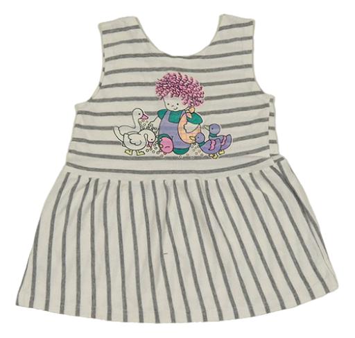 Bílo-šedá pruhovaná tunika s dívkou a husami