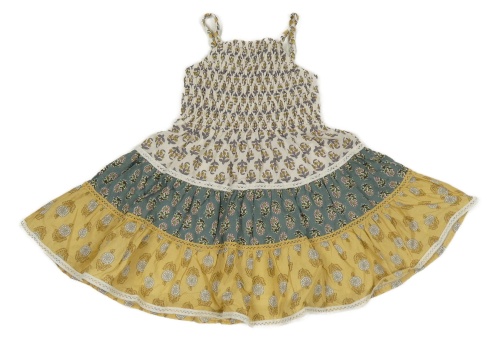 Smetnaovo-šedo-okrové plátěné žabičkové šaty se vzorem Matalan