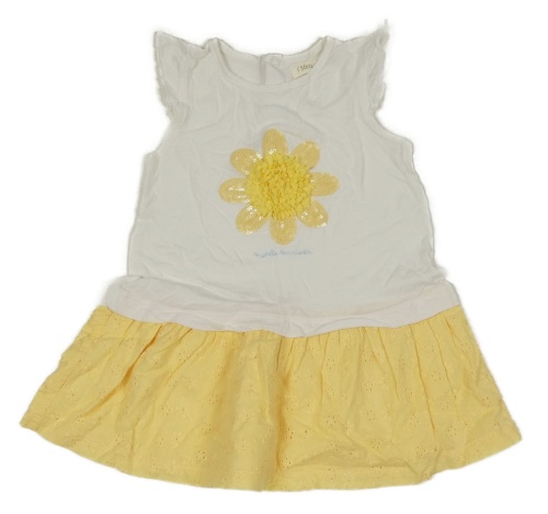 Bílo-žluté bavlněné šaty s květem z flitrů Sfera