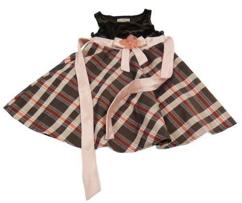 Hnědo-kostkované šaty s páskem