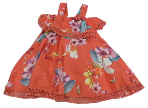 Oranžové plátěné šaty s květy a volánky Ted Baker