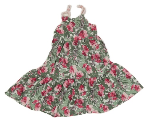 Bílo-khaki letní šaty s lístečky a květy a motýlky dopodopo