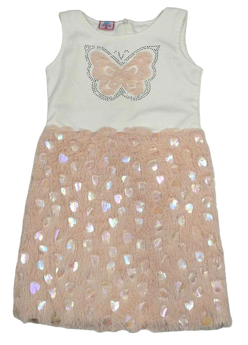 Bílo-růžové šaty s motýlem s kamínky a chlupatou sukní se srdíčky