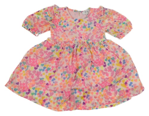 Světlerůžovo-barevné šifonové šaty se srdíčky a volánky