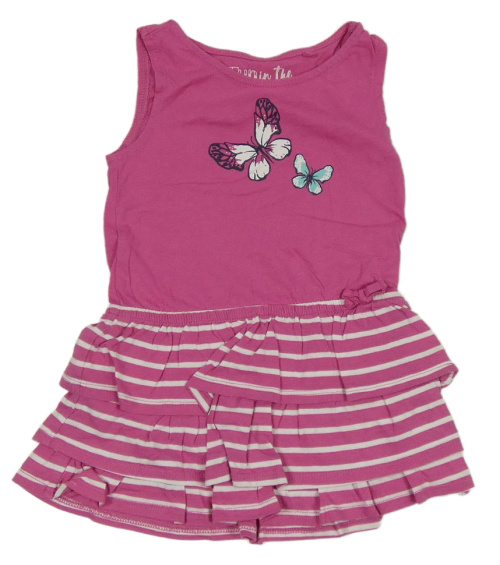 Fuchsiové pruhované bavlněné šaty s motýlky a volánky