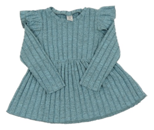 Světlemodro-šedá melírovaná žebrovaná šatová úpletová tunika s volánky SHEIN
